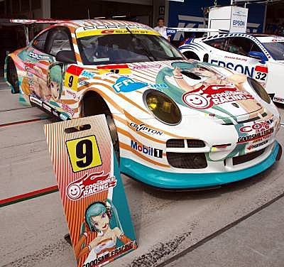 有兩台很吸睛的初音號911 GT3R痛車在賽場中奔馳穿梭